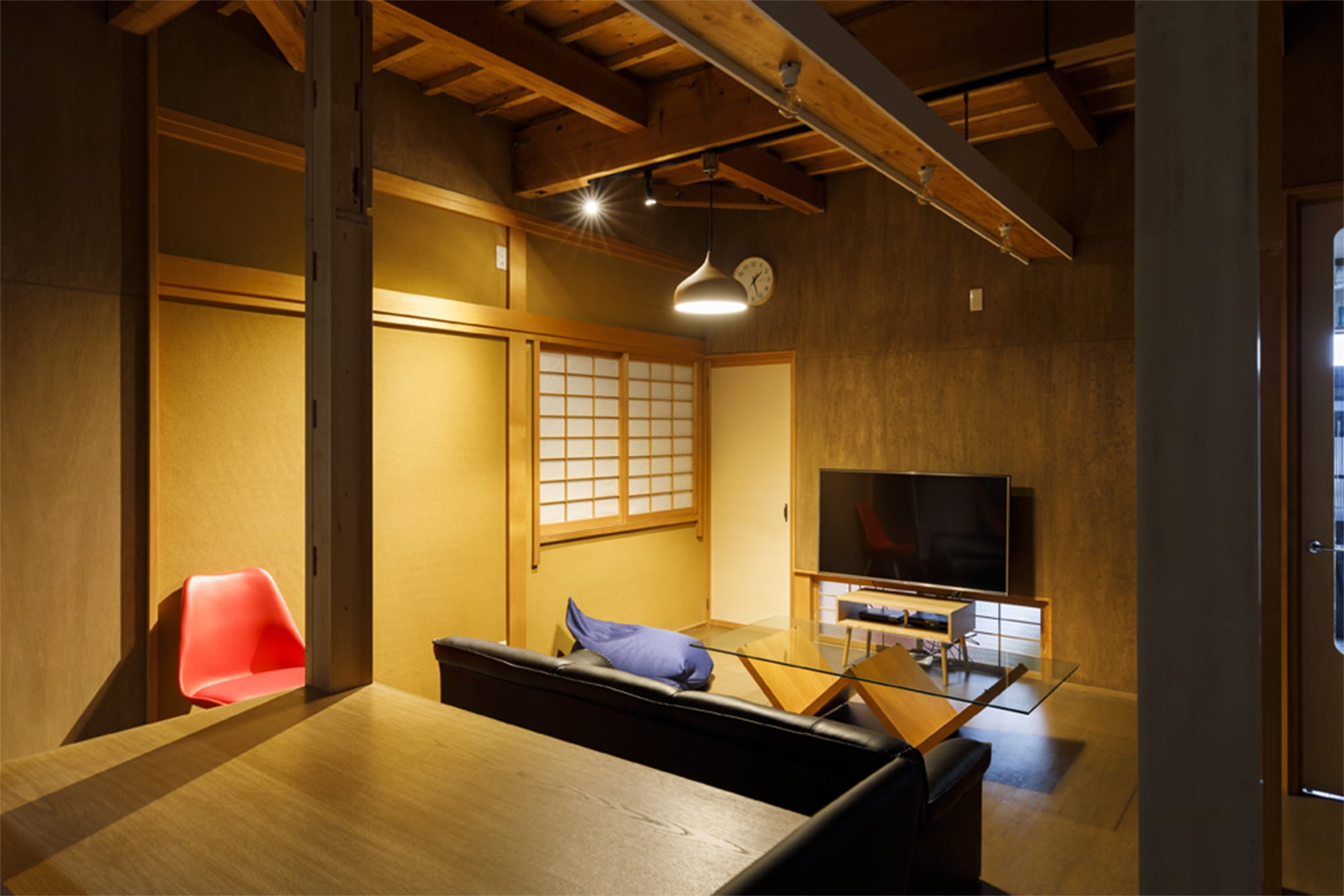 その一角、間口4.55m、奥行き26.39m、裏通りまでつながるうなぎの寝床型の木造建物。