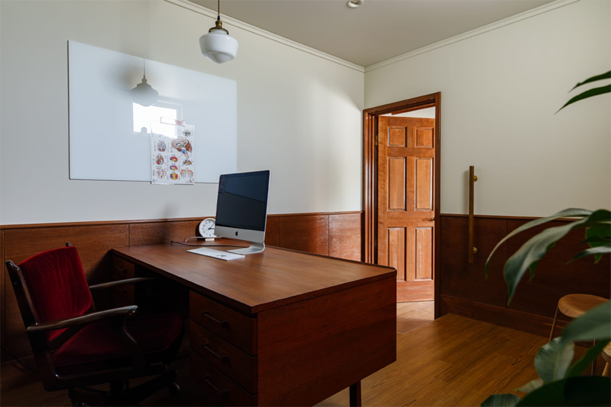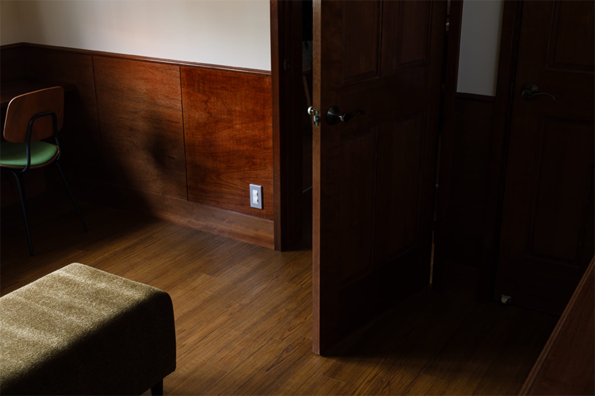 腰壁、ベニヤ板オイル塗装+ウレタン塗装。