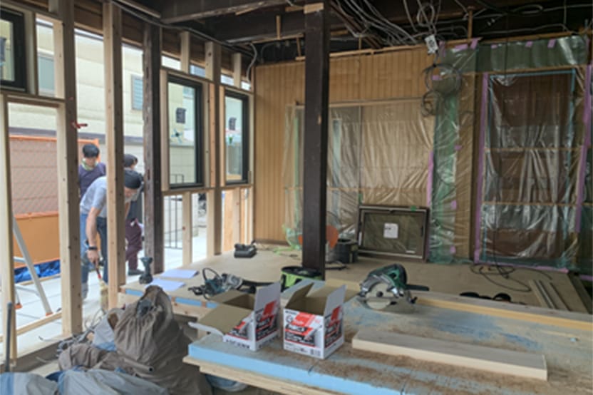米穀店だった部分を喫茶店へ作り変える。