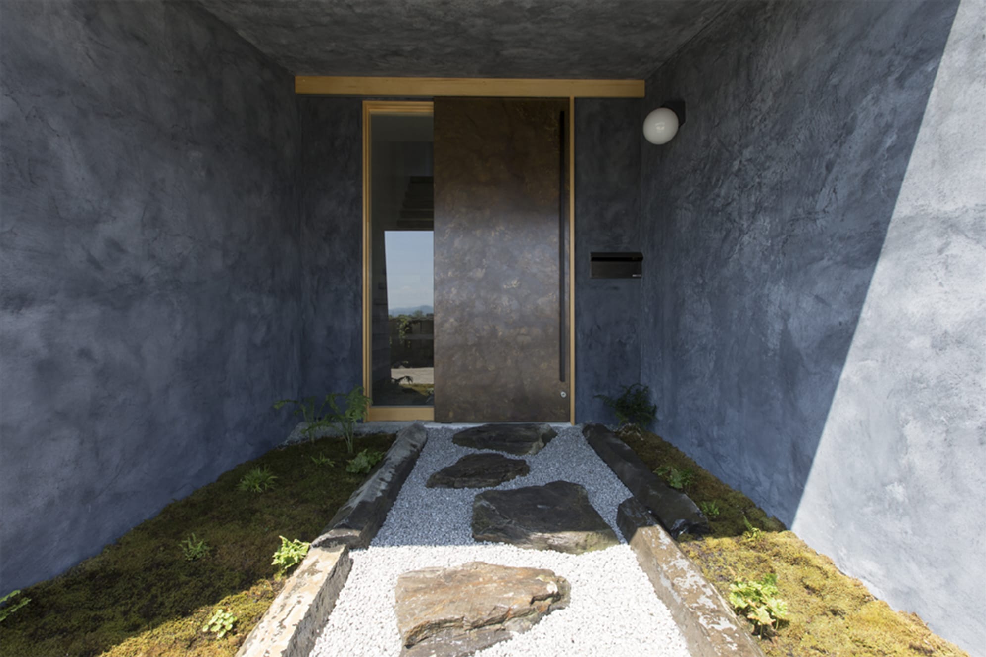 庭、飛び石、囲い、重い引き戸