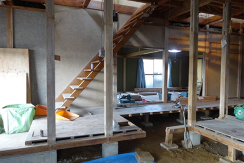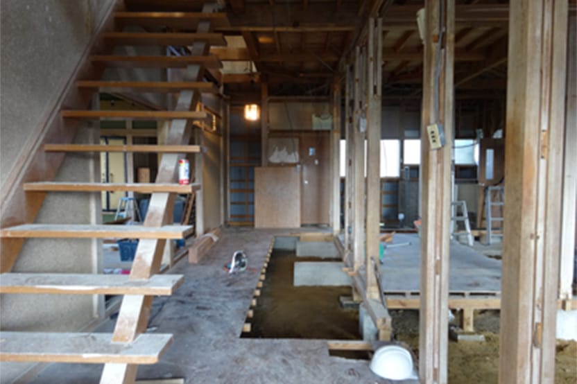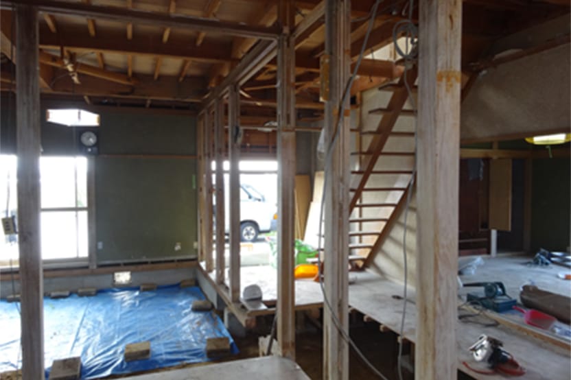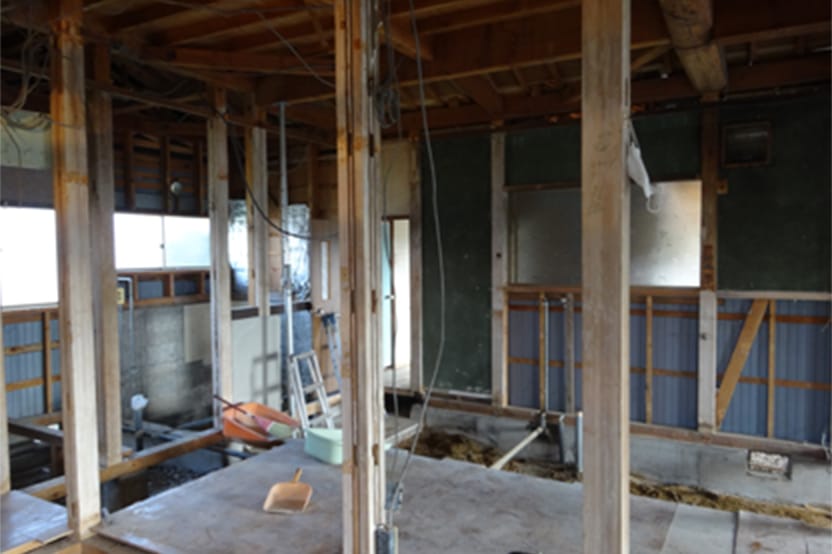 構造の柱や梁を残して、なくなった壁、天井。